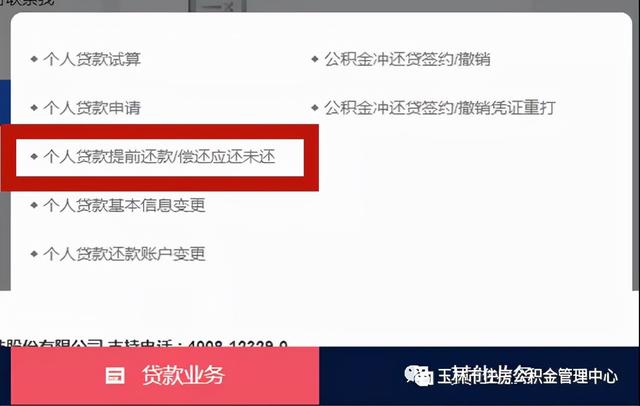 安装“玉林市住房公积金管理中心”手机APP,输入证件号码、登录密码成功登录后,点击业务办理—贷款业务—提前还款。