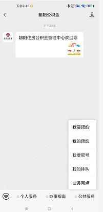 对无法线上办理却急需到营业大厅处理的业务,建议您登录“朝阳市住房公积金管理中心微信服务号”,通过公共服务点选我要预约,并提前准备好所需要材料选择就近网点办理,即办即走,减少在公共场所滞留的时间,最大程度降低交叉感染风险。