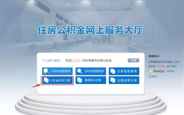 11、若已进行中级认证,则会进入淮南住房公积金网上办事大厅,选择公积金还贷支取: