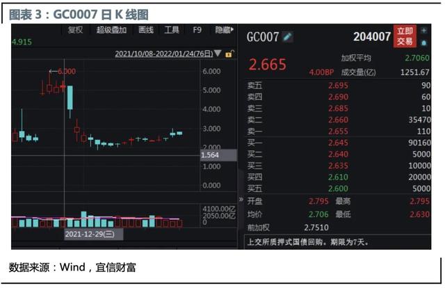 需要解释的是,如果在距离春节假期开始前7日之内进行7天逆回购操作,其有效其为春节前非周末工作日数 7天长假 与春节长假紧密相连的周末天数,14天逆回购操作同理。春节长假前,国债逆回购收益率通常有两大特点:第一,资金收益率显著高于平时,且越临近假期,资金价格越高;第二,日内资金价格走势通常呈现前高后低走势。对于个人资金而言,7天(GC007)和14天(GC014)是更加适合的选择。