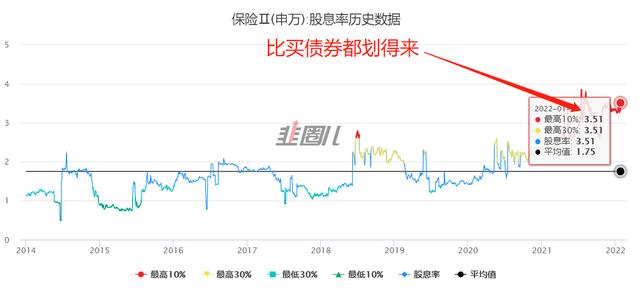 现在保险行业的平均股息率达到了3.51%的历史高位,历史百分位处于99%以上!有一些保险公司的股息率还高于4%!