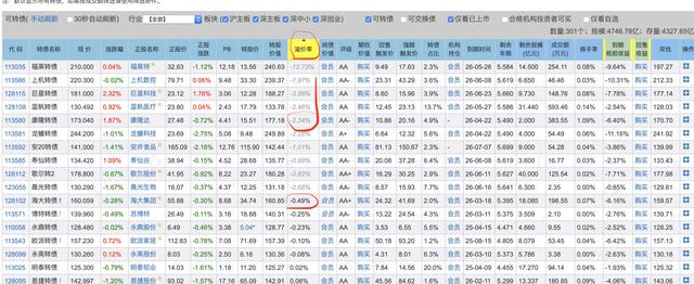 如果溢价率小于-3%时可以买入可转债,当日转股,第二天卖出;持有正股者也可以卖出正股,买入可转债债,进行转股,重新获得正股。转股溢价率可以在集思录上看到,没有进入转股期的都是灰色字体。