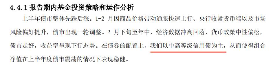 年度报告中提到,以中高等级信用债为主,实行中等久期策略。策略在三四季度变化得比较频繁。