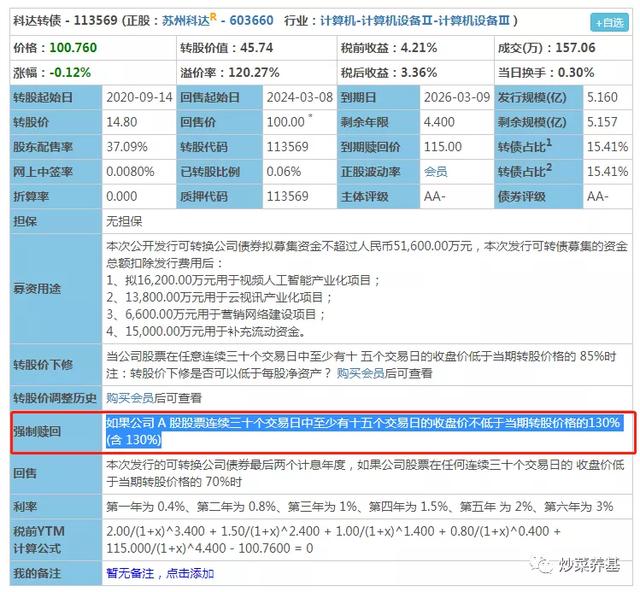 那上市公司为什么要让他发行的债券强赎呢,这就要说到可转债的特殊性了,他是可以转换成股票的债券,正是因为这一点上市公司他就不想还钱给你,他希望你转为股票,转了股你就成为了股东,就不是他的债主了,他就可以不用给你还本付息了。这是目前大部分上市公司发行可转债融资的一个想法。但是转股价如果比正股价还高你肯定是不愿意转,转了你就亏大了,所以只有转股价低于正股价你才有利可图你才会转股,但是如果现在的转股价已经比正股价低很多了,你还不转股,上市公司就可以利用强赎逼迫你尽快转股,免得夜长梦多,股价再低于转股价。如果你不转股,你就亏大了,因为赎回价才比面值100元多一点,所以一般人都会尽快转股赚取收益,或者直接卖出可转债。