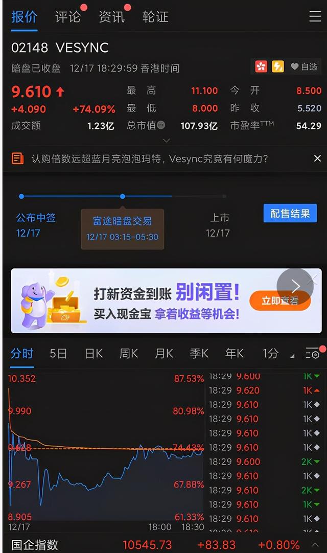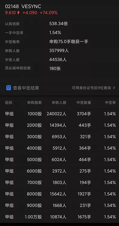 2.今天Vesynec上市,暗盘大涨74.09%,申购一手5520,不计算成本的话,一手能赚4084港币