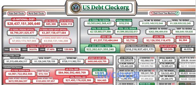 截止6月23日,美国国债实时钟上显示的国家债务总额达到28.4万亿美元,其中外国持有美国国债7.42万亿美元。6月12日,美联储的资产负债表首次达到8万亿美元,基本上是2020年2月份的两倍。