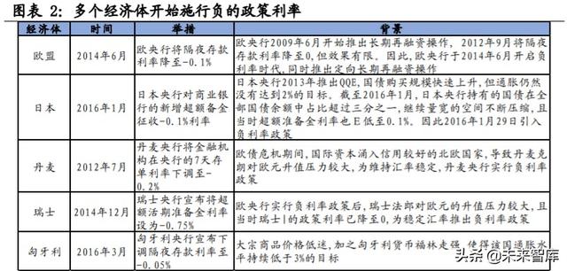 负利率常态化时代来临2008 年金融危机后,全球多个经济体通过货币宽松来提振经济。2008 年爆发全 球金融危机以来,全球经济下行,据世界银行数据可知,2009 年全球 GDP 增速 为-1.68%,为 1961 年以来的首次负增长。为了提振经济,多个国家货币政策趋向 宽松,如美联储的四轮量化宽松及“零利率”政策,推动利率下行。而欧盟、日 本等多个经济体,为了刺激通胀或稳定汇率,更是开始施行负的政策利率, 2014 年 6 月,欧央行将隔夜存款利率降至-0.1%,打响了全球“负利率”第一枪。