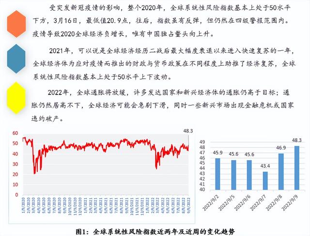 9月9日,较上周,中国系统性风险指数小幅下跌,为62.5水平,但未进入警报范围。目前受地缘政治冲突加剧、全球滞胀风险上升、新冠肺炎疫情反复等全球复杂局面下的中国宏观经济形势走势,对中国经济如何应对形成持续的下行压力,但因中国经济的韧性,可以实现短期稳住经济大盘和中长期可持续高质量发展目标。