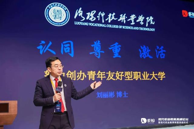 活动现场,洛阳科技职业学院校长刘丽彬博士围绕「职教改革与高素质技术技能人才培养」这一主题,发表了题为《认同、尊重、激活-努力创办青年友好型职业大学》的主题演讲。