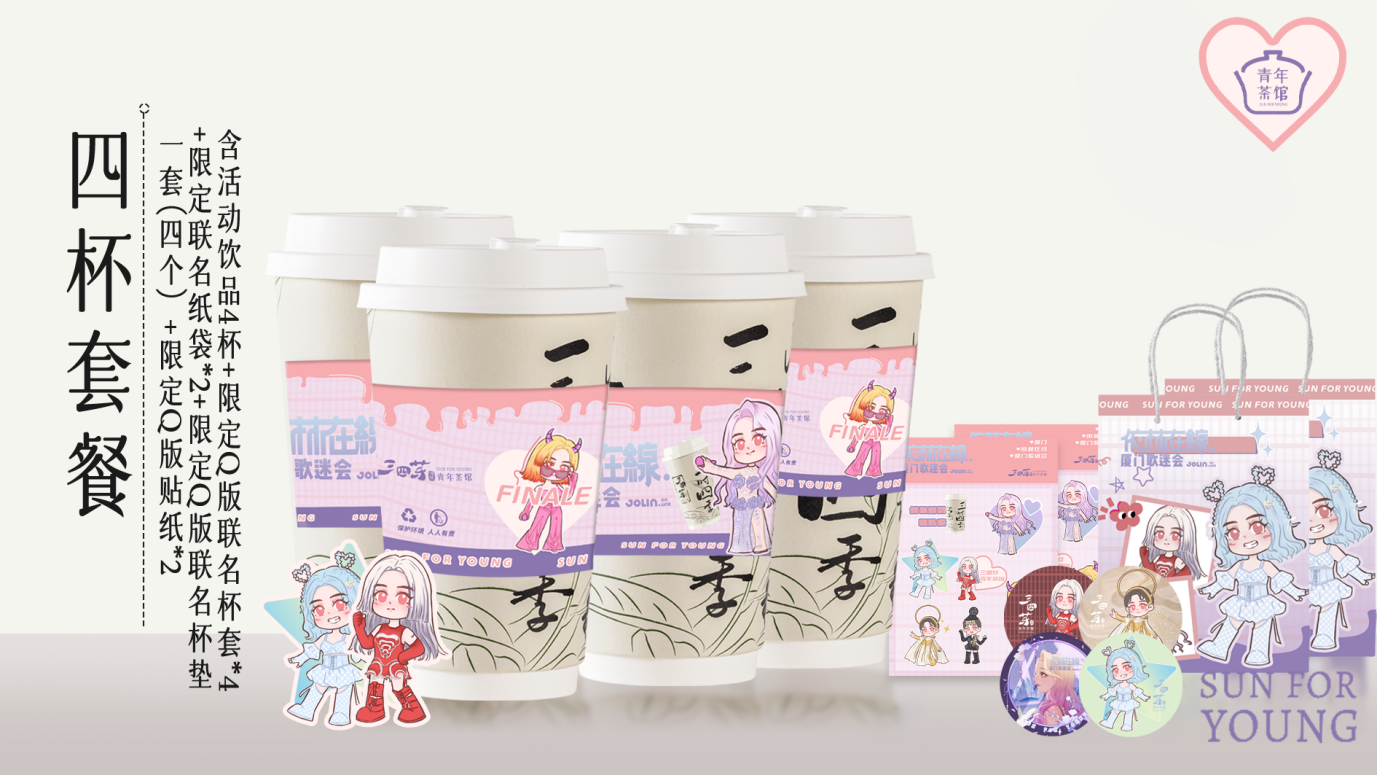 线下方面,三四芽选择了几 家位于厦门演唱会场馆周边的门店作为联名合作专属门店,对门店进行了主题包装。门店外墙张贴了蔡依林演唱会的巨幅海报,店内悬挂了演唱会主题的气球和彩带,收银台和取餐区摆放了联名周边产品展示架,营造出浓厚的演唱会应援氛围。同时,这门店还推出了 “集杯套换周边” 活动:消费者购买 “星芒青提茶” 可获得专属杯套,收集 3 个不同款式的杯套,即可兑换蔡依林演唱会应援扇或定制明信片一套;收集 5 个杯套,可兑换蔡依林演唱会定制手环一个。
