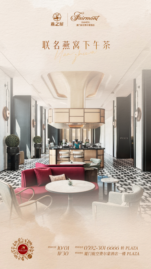 燕之屋联袂厦门航空费尔蒙酒店联名下午茶上线,于PLAZA臻启味蕾新程