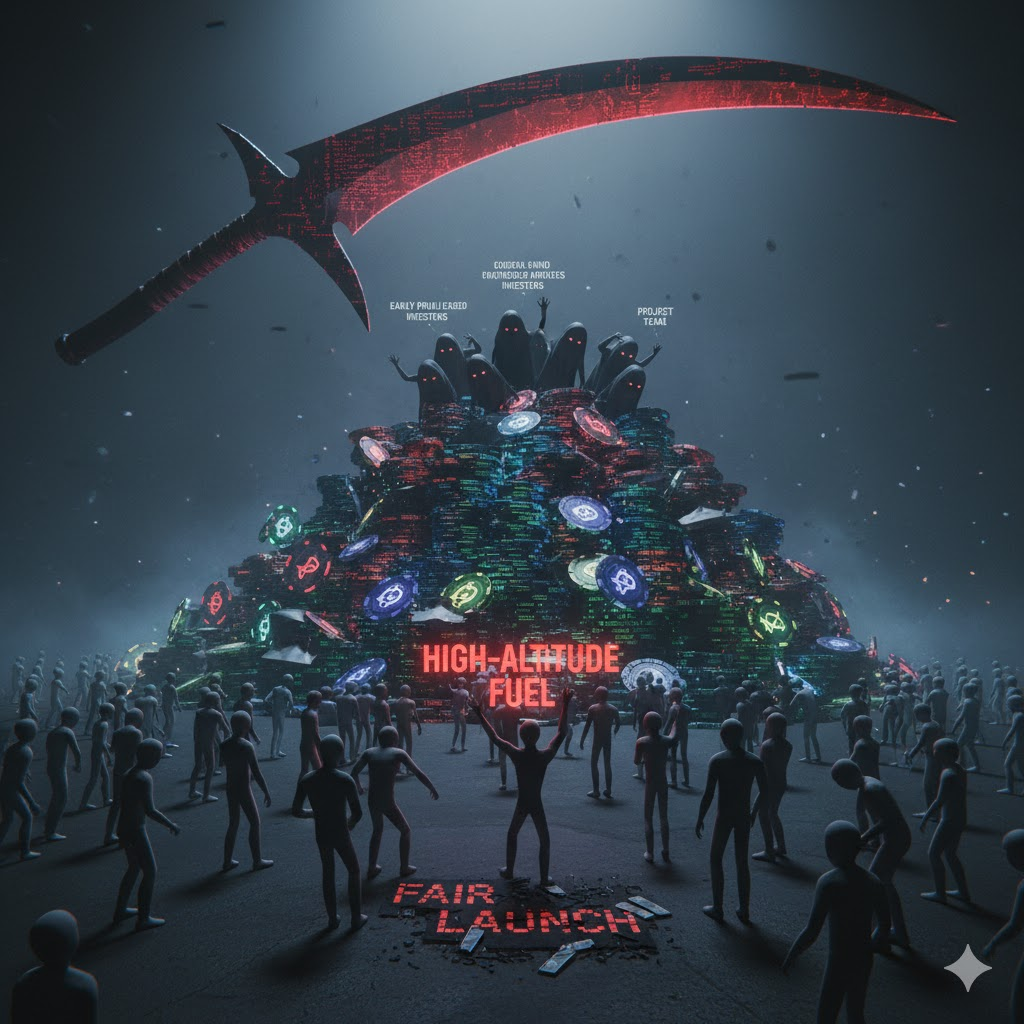 更无耻的是,那些“团队预留代币” 。项目方轻松地为自己预留10%、20%甚至更高比例的代币,这是一把悬在所有二级市场参与者头上的巨型镰刀,随时准备收割。而你我,从一开始就沦为了高位接盘的“燃料”。