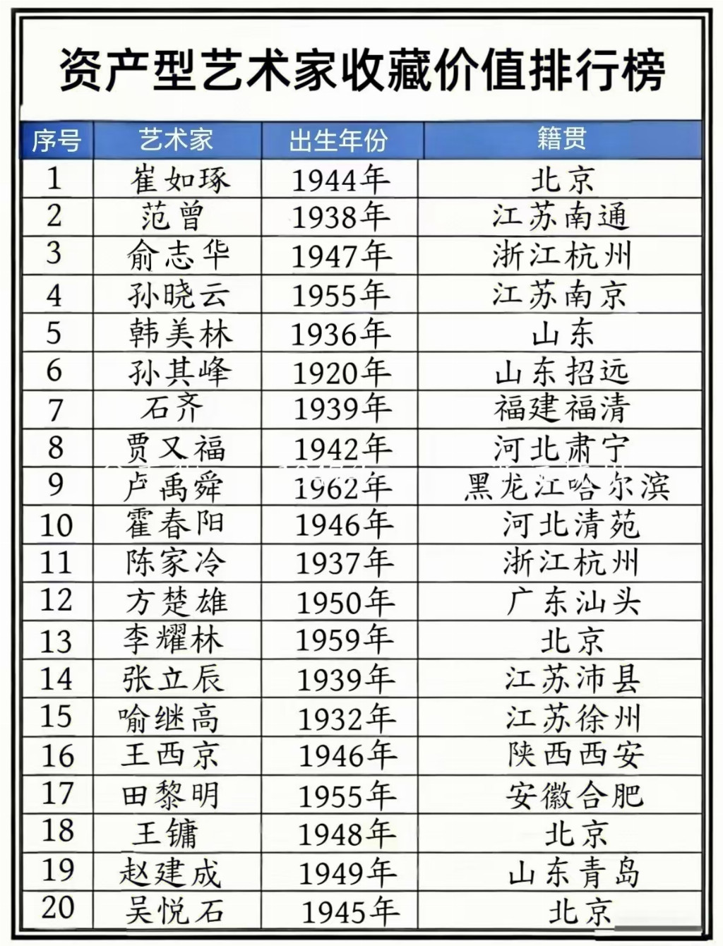 为此,隆重推出【资产型艺术家排行榜】与【收藏投资排行榜】。