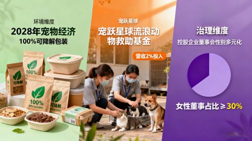 环境维度:要求被投企业制定碳减排目标,宠物经济板块2028年实现包装100%可降解;