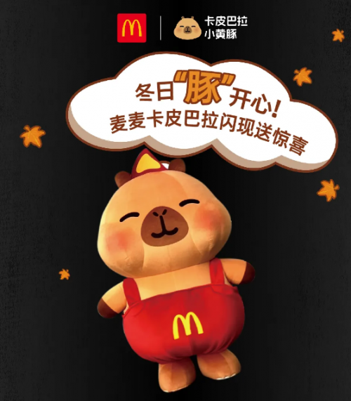 谁能拒绝软萌可爱的卡皮巴拉?凯德MALL·大兴联手麦当劳,邀来超人气顶流“麦麦卡皮巴拉”惊喜现身,为冬日注入满满元气。活动周末期间,这个自带“治愈Buff”的小黄豚人偶,会在一层麦当劳门前开启趣味巡游。