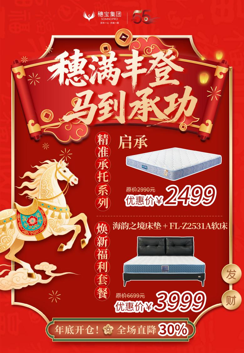 又是一年辞旧迎新,万家灯火中升腾着对团圆的期盼,也映照着人们对焕新生活的向往。作为始终陪伴中国家庭的国民品牌,穗宝集团深深懂得每一夜安眠的珍贵。值此新春来临之际诚挚启动「穗满丰登 马到承功」年度感恩大促活动,以扎实的产品与真挚的优惠回馈用户,为万千家庭承托冬日里的温暖安稳,共迎一个舒心好年。