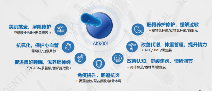 目前,企业已构建“原料供应+ODM开发+菌株定制”全产业链生态,原料适配硬胶囊、片剂、液态饮等多种剂型,同时,推出“AKK001+益生元”“AKK001+麦角硫因”“AKK001+AKG”等协同配方,覆盖肠道健康、抗衰、代谢管理等多场景需求。