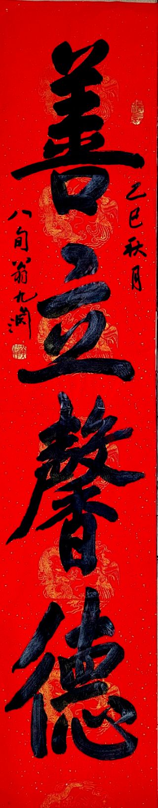 黄伟诗书,追求艺术与内容的统一,不拘一格,用不同的笔意笔调表现作品不同的意蕴、意韵、意境、意趣,开创出“尚情崇意”新书风,大开大合,恣肆汪洋,气象博大,典雅豪迈,富于时代气息,获得巨大的社会影响力。是“共和国文艺复兴奖”获得者,“国家十四五规划文化建设奖”和”联合国人类文化贡献奖”获得者。授“新时期国家文艺开拓者”,“中国文化品牌人物”和“人民艺术家”称号。2019年国家机关出版《风华古韵/G20(大阪)峰会/中国文化艺术代表黄伟书法特刊》作为国家最高领导赠送各国与会首脑政要的国礼。2021年《联合国日报》出版《黄伟艺术专刊》发行全球会员国。2024年1月中央外事办选用黄伟书法“福缘善庆”作品,由景德镇制成高档瓷盘国礼摆件赠送联合国,成为新中国赠予联合国的第五件国礼,与长城挂毯和世纪宝鼎等传世珍宝并列,见证我国春节纳入联合国假日的历史性时刻。黄伟对人类的多项贡献,荣膺“联合国文化艺术勋章”,“联合国和平勋章”和“联合国非遗传承人勋章”。