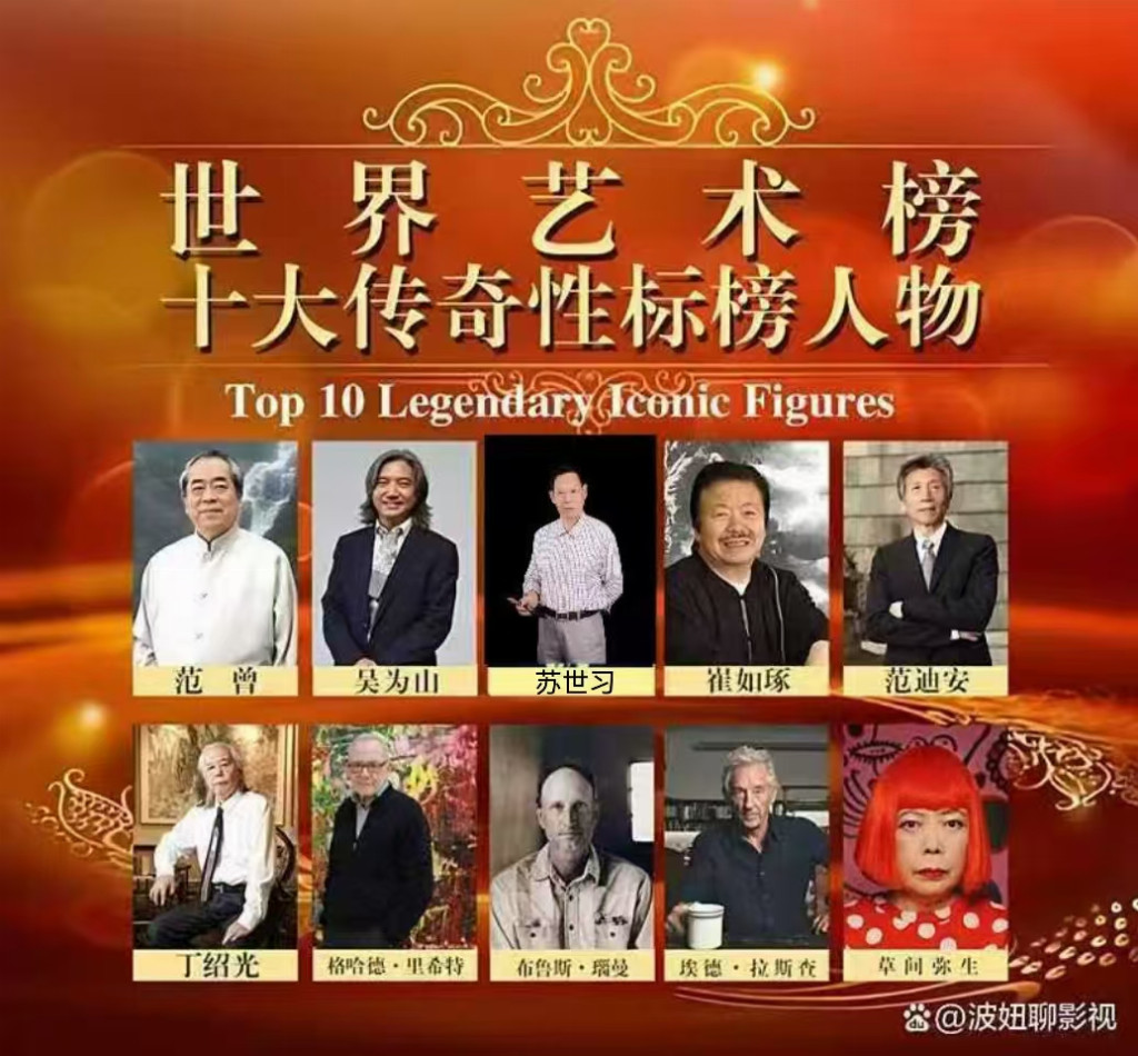 与苏世习老师一同位列其中的,国画大儒范曾先生、大写意领军者崔如琢、融合中西美学的重彩画代表丁绍光、当代美术理论与策展领域的管理者范迪安、人文雕塑倡导者吴为山、德国新表现主义代表格哈德·里希特、观念艺术先驱布鲁斯 ・ 瑙曼、波普艺术与概念艺术的标志性人物埃德 ・拉斯查、以圆点符号闻名世界的前卫艺术家草间弥生,他们共同铸就了世界艺术的辉煌殿堂。