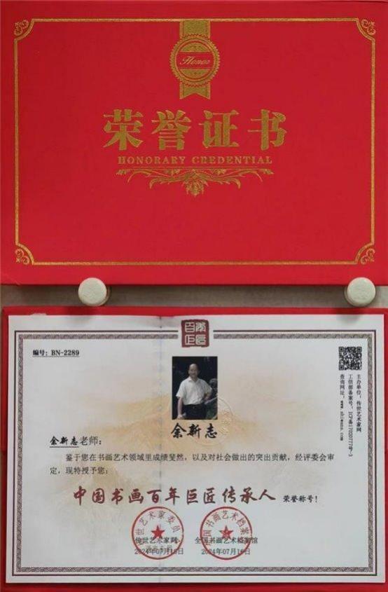 问 ,联合国教科文组织名誉主席 ,国际书画家协会常务主席, 中国陶行 知教育基金会艺术总监,清华大学美术学院特聘教授,西南交通大学客座教授等百余职。 1989 年就在中国美术馆成功举办个人书画展,声震画坛, 享誉海内外。2007年应邀参加外蒙古国“纪念成吉思汗成 立 800 周年”大型活动 ,被授予“成吉思汗”荣誉勋章;2010 年被世界华人华侨总会评为“世界华人精英优秀人物”和“ 世 界华人杰出艺术家 ”;2011 年被国家授予“共和国杰出书画 家 ”勋章;2014 年被授予“全国 I五 ·一I劳模”勋章;2015 年被评为“非物质文化遗产传承人物”,授予“一代宗师” 荣誉称号。2017 年在美国洛杉矶举办画展 ,受邀走进联合 国会议大厅参加高峰论坛会 ,受到布鲁斯·罗茨主席的亲切 接并合影留念。2021 年余新志先生与张大千、林散之、李 苦禅、林凤眠、启功、