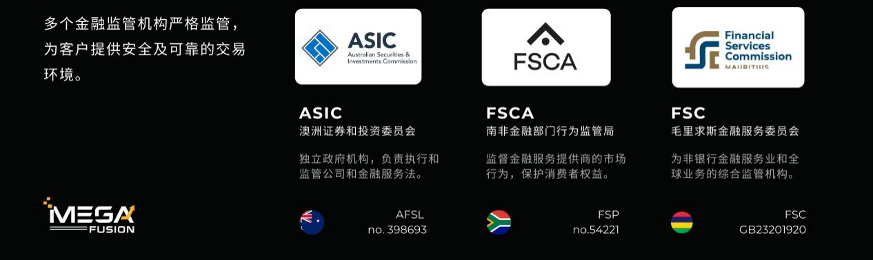 MEGAFUSION安汇成立于2011年,持有多国监管执照,提供涵盖外汇、贵金属、指数与加密资产的多资产交易服务,致力于为全球交易者提供公平、高效、透明的交易环境。