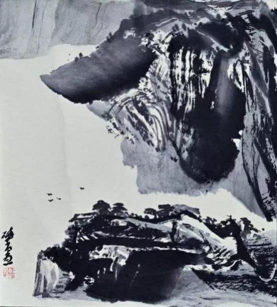 碎孟用焦墨 表现他们坚实,用浓青黑色 表现漫山崖谷上黄山松占山为王霸气和坚强。黄山松也很浪漫,他们和白云相拥和天地对话,和山川嘘寒问暖。 松树它以其雄伟身姿绿化着祖国大地,护卫装饰着大好河山