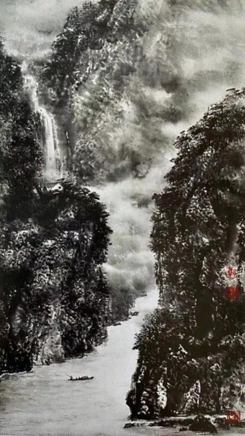 日本画坛大师盛赞“透明淋漓,很有水墨艺术情趣”;重彩力作《黄山飞瀑》施墨浓艳、颜料厚重,笔墨质感与自然磅礴完美契合。更以大尺幅、大意境传递民族精神,500 厘米巨作《黄河颂》悬挂于人民大会堂,笔下黄河一泻千里,将民族精神的磅礴表现得淋漓尽致,《巨龙雄魂》以红与白的强烈对比勾勒长城,凸显中华民族的精神脊梁,其作品不仅是山水描摹,更是借景抒情、以画言志的精神表达,被李可染先生盛赞“画得很有情趣,很生动”。