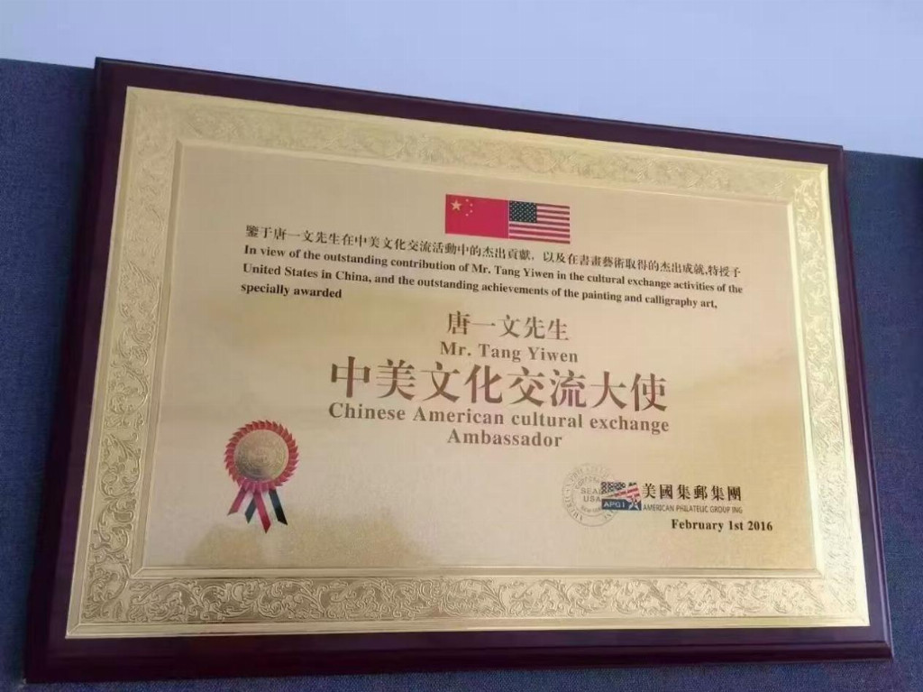 唐一文现为全国人民艺术家信用管理中心书画艺术委员会主席、国务外交礼品师、北京中南海国礼艺术家、中国新长城杰出艺术家。