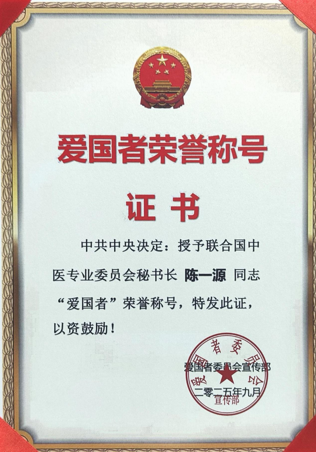 联合国中医专业委员会 秘书长