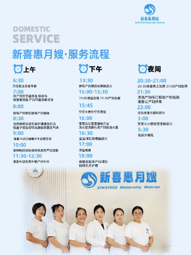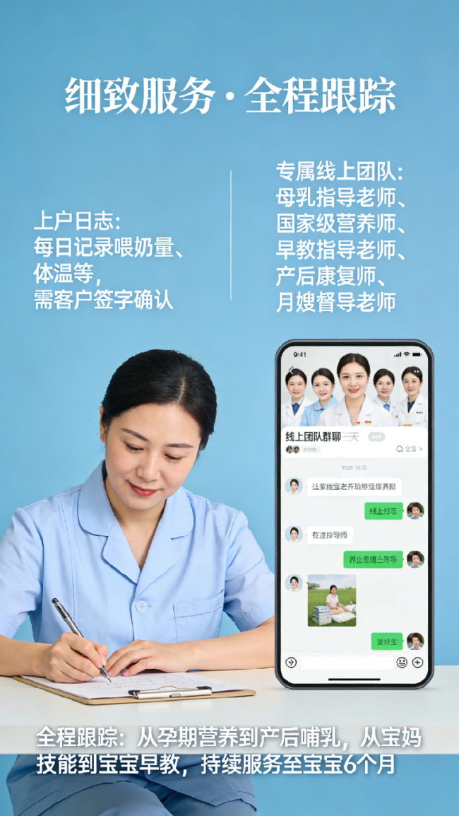 在月嫂服务层面,新喜惠将其定义为“产后母婴全周期健康管理”。服务拆解为产妇护理、新生儿护理、营养膳食、技能指导等7大模块,细化至60多个标准化环节。例如,在产妇护理上,不仅关注伤口消毒、乳房护理等生理恢复,还格外重视情绪观察与心理疏导,预防产后抑郁;在新生儿护理上,强调24小时科学守护与健康监测,并对早期潜能开发(如抚触、视觉训练)予以专业引导。其“阶段式”月子餐定制,遵循“排、调、补、养”的科学规律,兼顾营养与美味。
