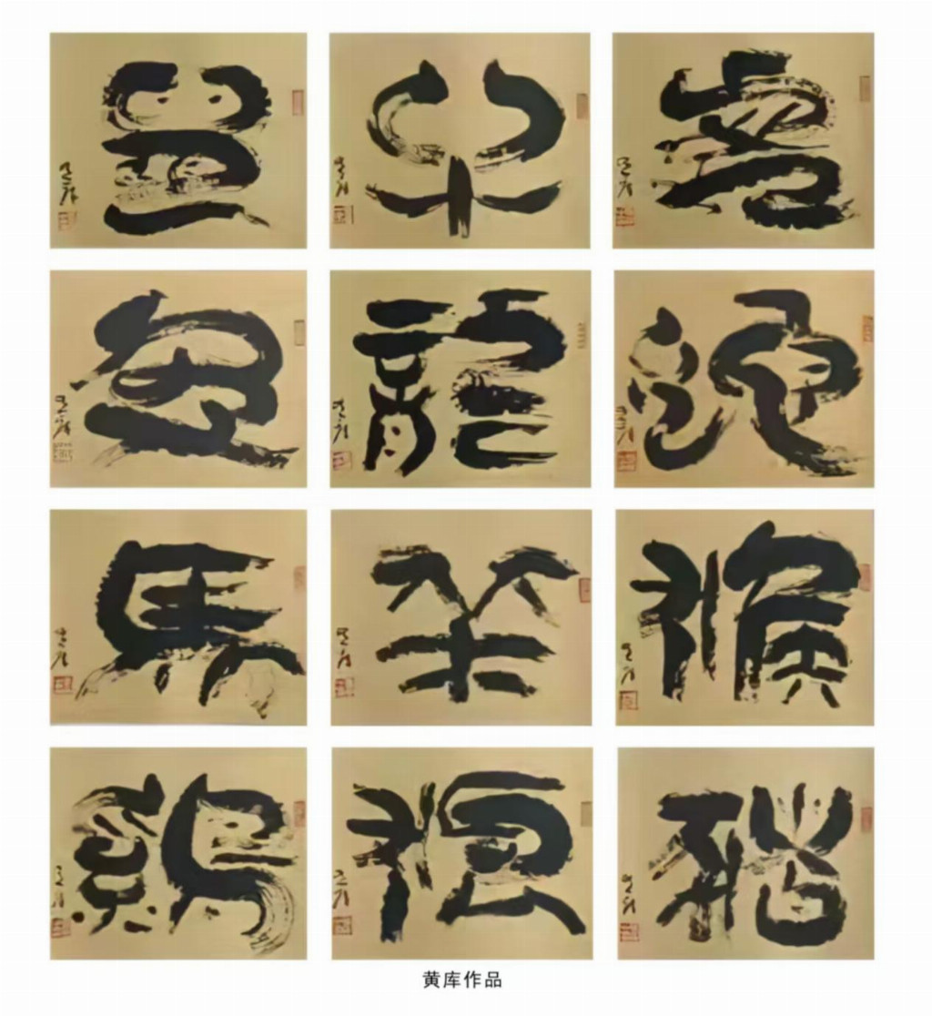 黄库书法代表作品被广泛收入国际、国内书画经典,并登上国际国内邮票、景德镇瓷器、美国纽约时代广场纳斯达克大屏及时代周刊。12 生肖作品已经成为具有标志性的特色文化品牌产品。书法代表作品集《强国复兴有我 • 中国脊梁》(黄库 • 卷)封面人物,人民出版社出版发行3000万册 。辞书代表著作《辞类》(300 万字),耗十年心血,1993 年出版发行,填补中国辞书空白。入选《中国社会科学工具书捡索大典》,全国公共图书馆和各大专院校图书馆均有收藏并流经海外。还出版个人集《中国艺术功勋集》(黄库 • 卷),文化发展研究部编。《蓝皮书 • 黄库》,对外联络部信息编研室编。《中国美术名著 • 黄库》,国委对外宣传办公室编。《环球文旅人物》(引领行业的力量——黄库)专刊,每日邮报新闻釆编部、非凡十年史料采集编研部合编。《2025 中国文化艺术统计年鉴 • 黄库》,印象中国编辑委员会主编。《功勋薄》(艺术类•黄库),党史文献出品。《人民年历》(2026•黄库),人民代表艺术委员会。《百年巨匠》(黄库•卷)《中国与世界》国委对外宣传办公室。入选史册典籍《印象 • 中国》(封面人物,人民出版社)《中国书法史》《中国书法兰亭奖精品集》(封面人物)《大红袍 • 综合卷》(中国近现代名家典藏画集)《中国书画百年史 • 百位名家》 (封面人物,人民美术出版社)《世界书画开宗立派创始人作品集》(封面人物)《共和国书画档案》(封面人物)《兰亭与美史》(封面人物)中艺名家对话组委会编著《征程》(封面人物)《功勋艺术家》(封面人物)人民出版社《马年国礼珍藏卷》(封面人物)华夏文学出版社《2026聚焦两会·书画特刊》(中华书局)《联合国教科文组织书画珍藏册》《联合国成立八十周年·中国书画精选集》《世界美术家大辞典 • 中外美术家选编》《世界美术教育史》(中国美术出版社)《世界殿堂级艺术大师——孩子一生应该知道的二十位殿堂级艺术家》(法兰西皇家美术学院)等百余种书画典籍。
