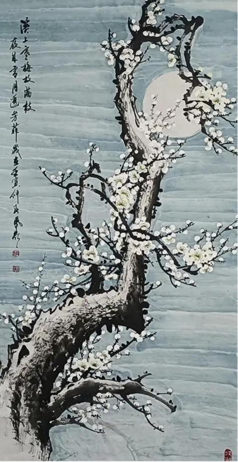 他的创作题材很丰富,无论是挺拔清秀的竹子图,还是出淤泥而不染的荷花图,亦或是傲霜斗雪的梅花图,均展现了富有魅力的东方审美特质,经由写生不仅是自然景物的再现,也是画以载道表达情操的外化。竹叶轻盈飘逸,荷花的圆润拥禅,梅花枝干遒劲,这些作品非常适合文化空间装饰,陶冶身心,舍此其谁?
