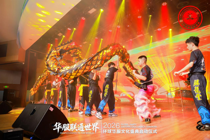 随后,舞狮表演将气氛推向高潮。在欢腾的锣鼓声中,温佳禄、罗萤、陈秋雄、罗礼平、鲁加升、陈宏瑶、孙海珍、张羽瑄、陈永祥、汤汉华、李远贤等领导嘉宾共同上台,启动象征“华服联通世界”的视觉装置,标志着2026环球华服文化盛典正式启航。