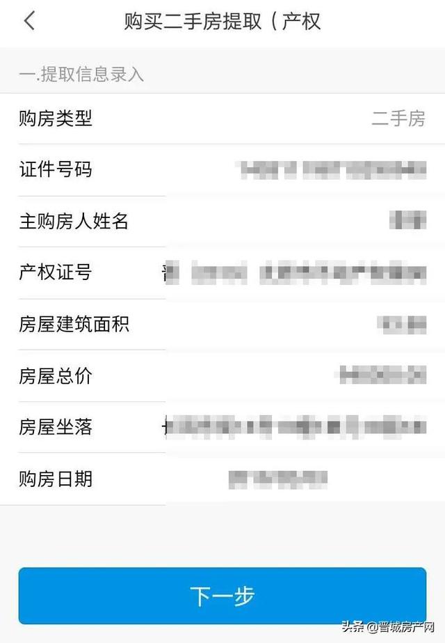 录入所购买二手房的产权信息,然后点击"下一步"。