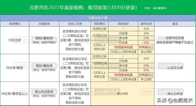 这里需要注意的是限购政策调整,但是限贷政策目前并没有调整,所以市区如果有2套及以上需要全款。而且限购是查合肥市区住房套数,限贷是查全国房贷记录。首套房是最低首付3成,有一次贷款记录已结清最低4成,未结清最低5成。