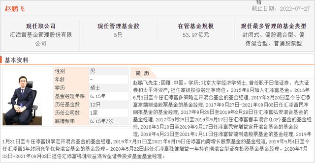 4、赵鹏飞。在管基金5只,在管规模53.97亿元,基金经理年限6.15年。从前十大重仓股变动来看,汇添富高端制造股票A(001725)二季度加仓了海尔智家1173834股,图南股份1232250股,仙琚制药1300000股,航发动力150000股。摘录了一部分二季报的内容,赵鹏飞对二季度买入新能源较少做了“检讨”,另,根据2021年的基金年报数据,基金经理本人持有10-50万份。