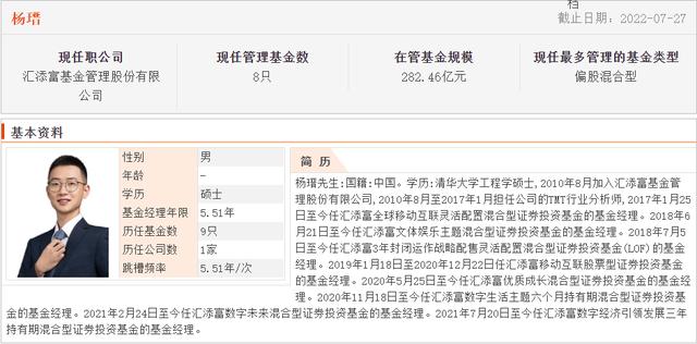 9、杨瑨。从前十大重仓股变动来看,汇添富文体娱乐混合A(004424)二季度加仓了贵州茅台、特步国际(港股)、美团-W(港股)、青岛啤酒股份(港股),汇添富核心精选混合(LOF)(501188)加仓了快手-W、华友钴业、五粮液。汇添富数字未来混合A(011399)加仓了广联达、海康威视。摘录了汇添富数字未来混合A(011399)一部分二季报的内容,各位读者自己看吧。另,根据汇添富数字未来混合A(011399)2021年的基金年报数据,基金经理本人不持有这只基金。