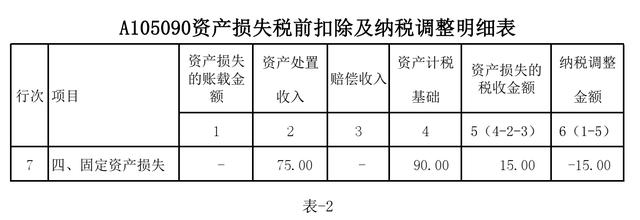 第一步:填写《A105090资产损失税前扣除及纳税调整明细表》,如表-2: