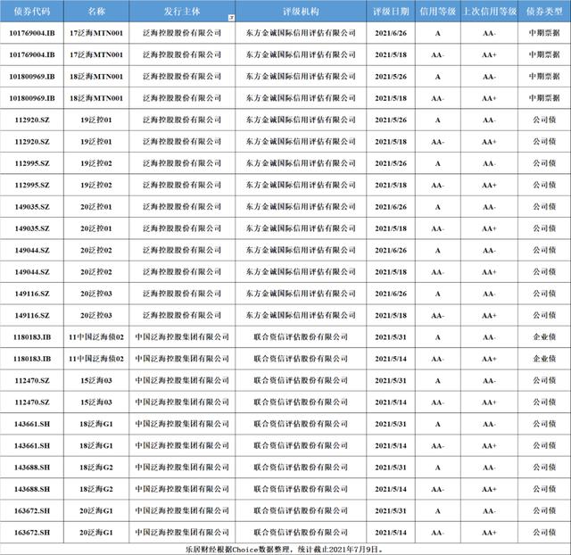 中国泛海控股集团有限公司以及泛海控股股份有限公司发行的多只债券分别被联合资信和东方金诚下调评级,目前均维持在A。