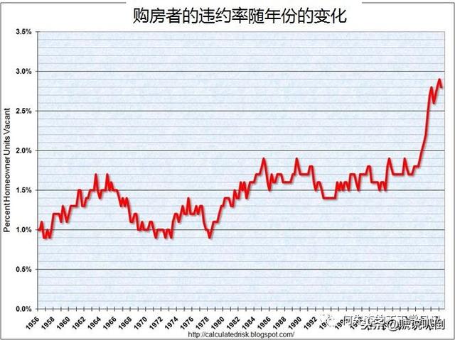 但这次,时代没有遗忘他们,在这次席卷全国的经济危机期间,他们的“美国梦”几乎都得到了实现。我们用一组数据来看一下,千禧年之后发生了什么?下面的图中横轴表示年份,纵轴表示美国居民的房屋拥有率,我们可以看到2000年到2006年期间,房屋拥有率一路飙升,的的确确是实现了居者有其屋的“美国梦”,尽管这个梦很快就醒了过来!