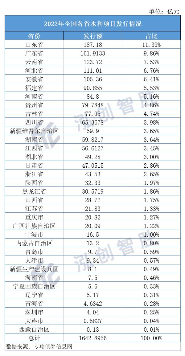 据不完全统计,2022年水利项目共计发行1970个,发行额度共计1642.8956亿元,较去年同期翻了近两番。