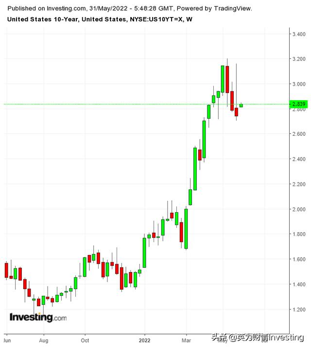 (美国十年期国债收益率周线图来自英为财情Investing.com)