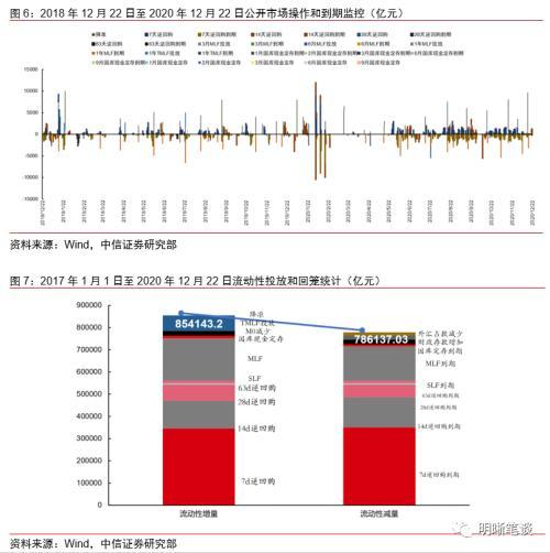 我们对市场流动性情况进行跟踪,观测2017年开年来至今流动性的“投与收”。增量方面,我们根据逆回购、SLF、MLF等央行公开市场操作、国库现金定存等规模计算总投放量;减量方面,我们根据2020年12月对比2016年12月M0累计增加13289.74亿元,外汇占款累计下降7788.46亿元、财政存款累计增加19412.53亿元,粗略估计通过居民取现、外占下降和税收流失的流动性,并考虑公开市场操作到期情况,计算每日流动性减少总量。同时,我们对公开市场操作到期情况进行监控。