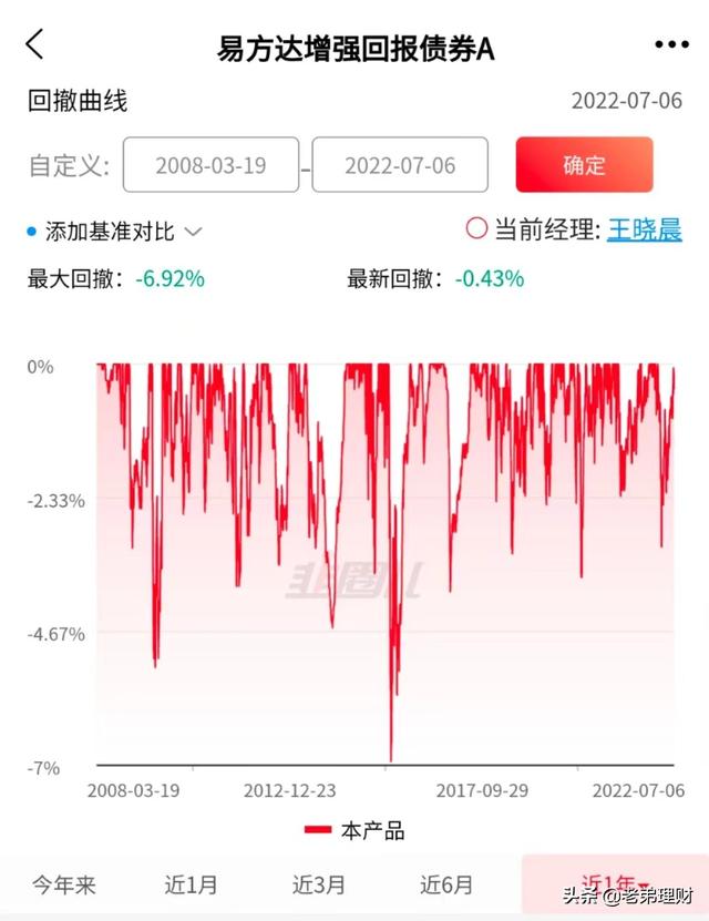 这个基金最让我关注的点不是他的高收益,更不是他的基金公司。而是其成立了15年,几乎保持了年年正收益的超高胜率(仅仅在2011年亏损0.86%。这才是真正的常胜将军啊。尤其是在王晓晨经理上任之后,没有一年是亏损的!