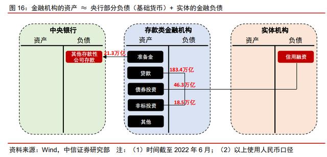 1、 金融机构的资产 ≈ 央行部分负债(基础货币)实体的金融负债。也就是说, 实体的资金供给直接受央行吞吐基础货币的影响、以及受金融机构缩扩表影响。 其中,金融机构资产的统计科目按产品划分,包括贷款、债券、非标、资管产品 等,与社融科目基本相对应。