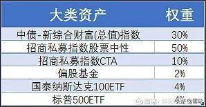 债券和市场中性策略指数,大概在80%左右,其中要么债券资产多,要么中性策略多。另外就是CTA策略需要在10%左右,其余是股票资产。股票资产变动很大,所以无法加入太多,加入太多很容易在极端行情下回撤比较大。