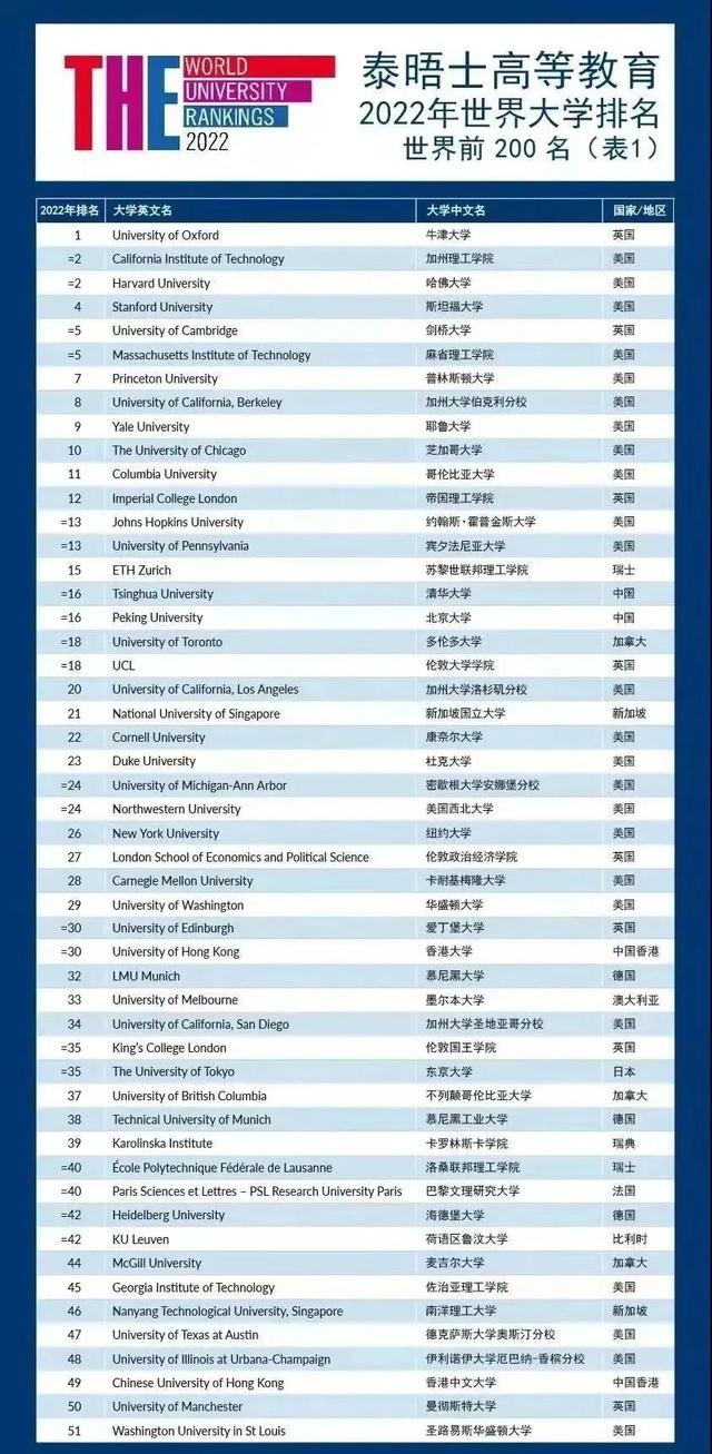 截至目前,除软科发布的是2021年的数据外,其余3个世界大学排名都已发布2022年的数据。