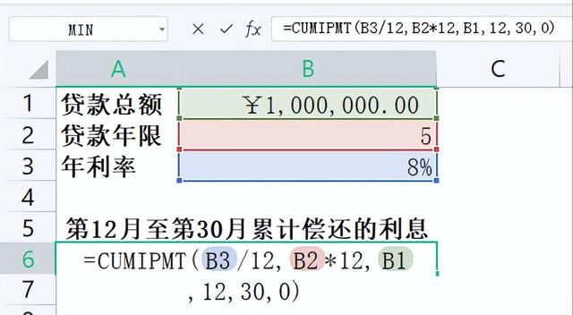 (3)CUMIPMT函数:计算某期间累计支付的利息