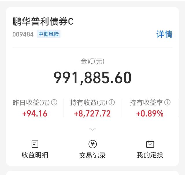 我另外持有的 鹏华普利债券C 一直都拿着,忙活了大半年还不如安安心心持有个债基。开始忆苦思甜了也就表示最近并没什么成绩。