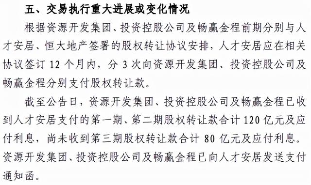 两笔欠款都发生在一年前,交易主体是恒大地产的股权,总价250亿。根据当时签的协议,深圳人安需12个月内,分3次结清转让款和应付利息。但截止到公告发布日(2021年12月8日),两笔转让款的第三期都未到账。
